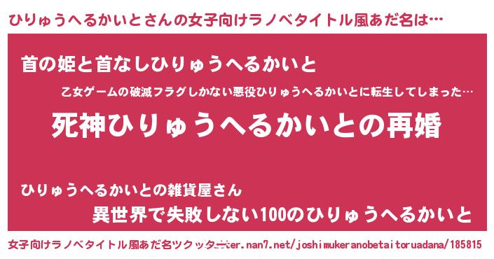 ひりゅうへるかいとさんの女子向けラノベタイトル風あだ名