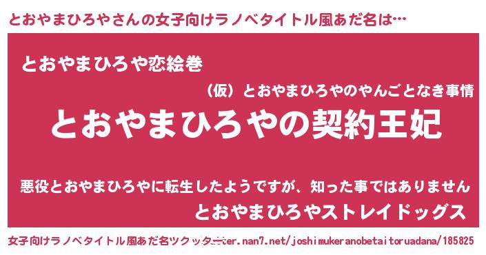 | 胡散臭い通販商品みたいなあだ名 | 『来世でも幸せになれる水素水…その名も「とおやまひろや」』 |