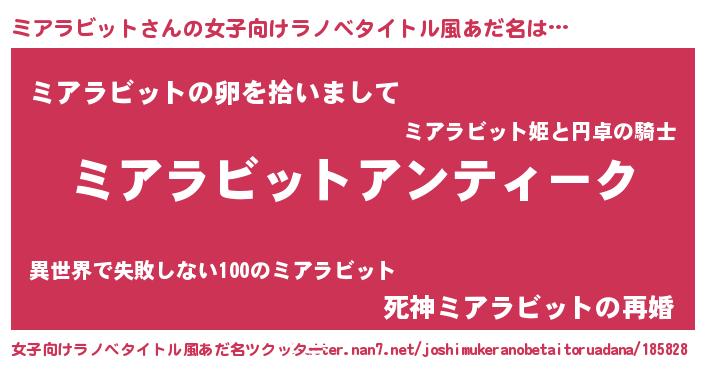 | 胡散臭い通販商品みたいなあだ名 | 『テレビで話題の高麗人参…その名も「ミアラビット」』 |