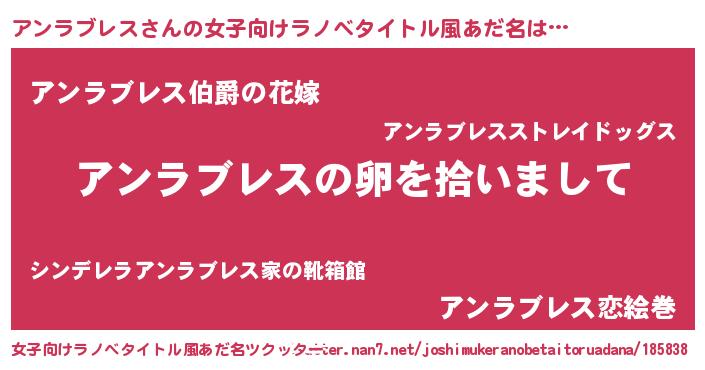 | 胡散臭い通販商品みたいなあだ名 | 『伝統あるサプリメント…その名も「アンラブレス」』 |