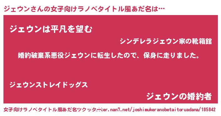| 男性向けラノベタイトル風あだ名 | 『転生したらジェウンだった件』 |