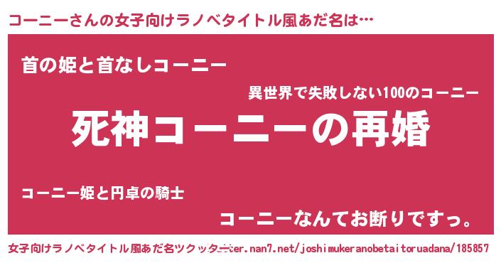 | ヘコむあだ名 | 『コーニー(笑)』『コーもー』『豆乳』 |