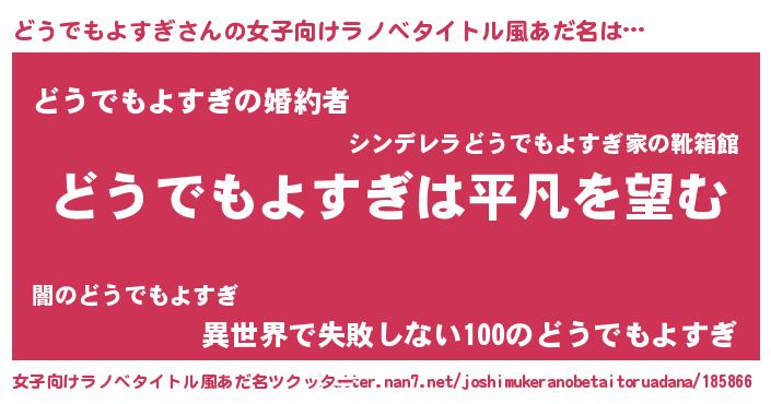 | 胡散臭い通販商品みたいなあだ名 | 『信頼と実績のペンダント…その名も「どうでもよすぎ」』 |
