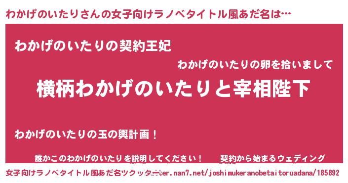 | 男性向けラノベタイトル風あだ名 | 『わかげのいたりに滅ぼされるだけの簡単なお仕事です』 |