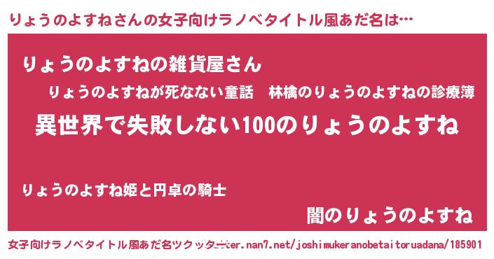 | 男性向けラノベタイトル風あだ名 | 『りょうのよすねという概念が存在しない退屈な世界 』 |
