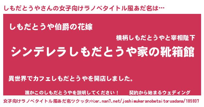 | 意味不明あだ名 | 『しもだとうやフォーエバー』 |