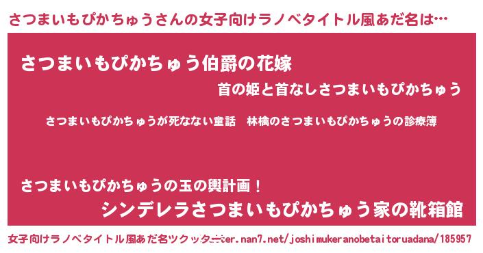 | 意味不明あだ名 | 『住所不定無職さつまいもぴかちゅう(12歳)』 |