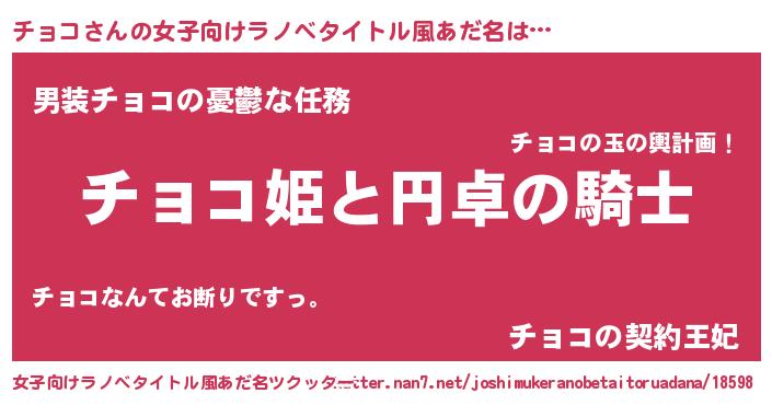 | 男性向けラノベタイトル風あだ名 | 『チョコアートオンライン』 |
