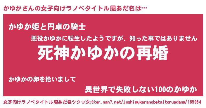 | 男性向けラノベタイトル風あだ名 | 『ノーゲーム・ノーカユカ』 |