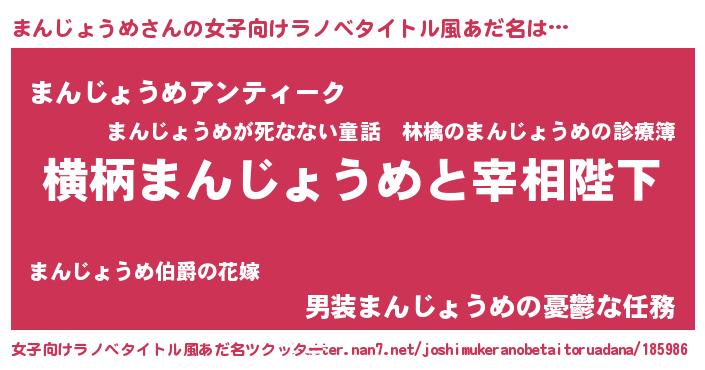 | 男性向けラノベタイトル風あだ名 | 『まんじょうめに滅ぼされるだけの簡単なお仕事です』 |