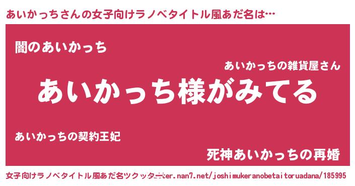 | 男性向けラノベタイトル風あだ名 | 『あいかっちの嫁は女の子じゃないと思った?』 |