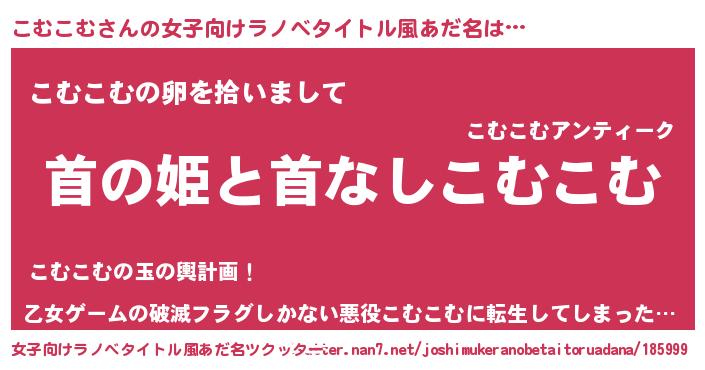 | 胡散臭い通販商品みたいなあだ名 | 『信頼と実績のサプリメント…その名も「こむこむ」』 |