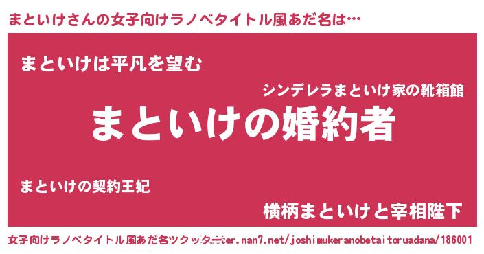 | 胡散臭い通販商品みたいなあだ名 | 『運命の人と巡り会える高級そうな壺…その名も「まといけ」』 |