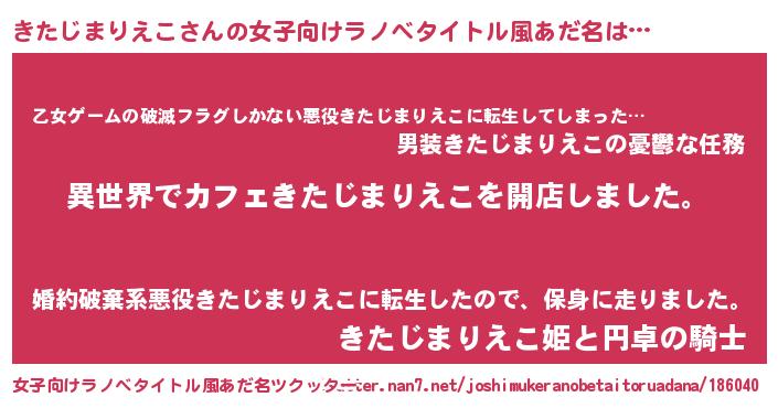 | 男性向けラノベタイトル風あだ名 | 『誰もが恐れるあのきたじまりえこが、ぼくの専属メイドになるようです。』 |