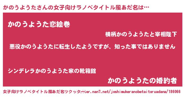 | 意味不明あだ名 | 『住所不定無職かのうようた(13歳)』 |