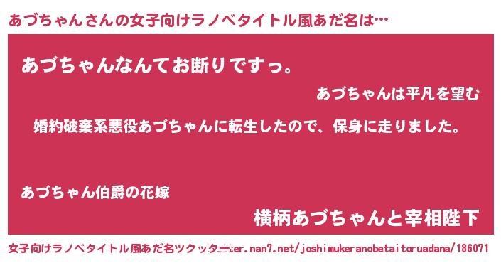 | 男性向けラノベタイトル風あだ名 | 『アヅチャンスレイヤー』 |