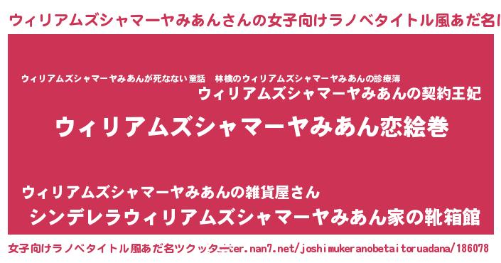 | ヘコむあだ名 | 『ウィリアムズシャマーヤみあん(震え声)』 |