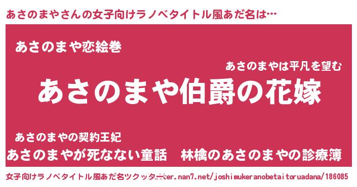 | ファンタジー風あだ名 | 『エターナルアサノマヤー』 |