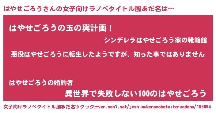 | 男性向けラノベタイトル風あだ名 | 『この素晴らしい世界にはやせごろうを!』 |