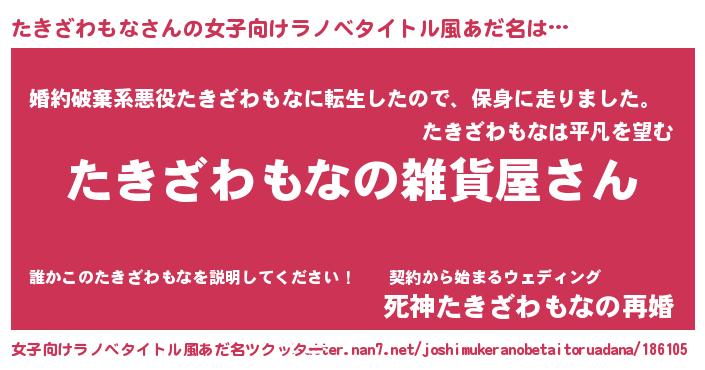 | 男性向けラノベタイトル風あだ名 | 『やはりたきざわもなの青春ラブコメはまちがっている 』 |