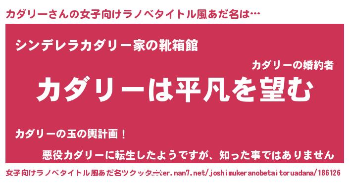 | 男性向けラノベタイトル風あだ名 | 『ダンジョンにカダリーを求めるのは間違っているだろうか』 |