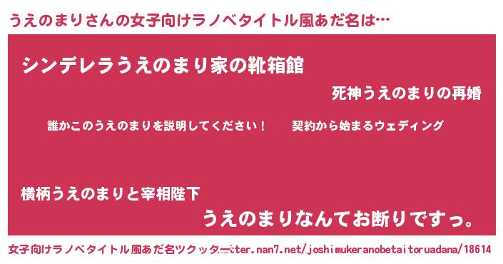 | 意味不明あだ名 | 『ペロリンうえのまり』『自称うえのまり』 |
