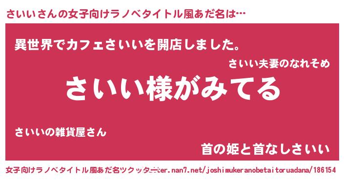 | 意味不明あだ名 | 『とにかく怪しいさいい』『自称さいい』 |