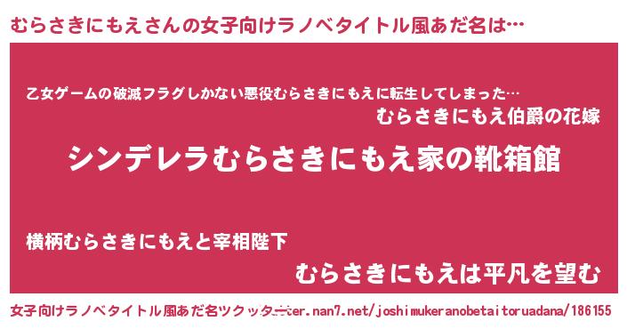 | 伝説のあだ名 | 『孤高の魔法使いむらさきにもえ』 |