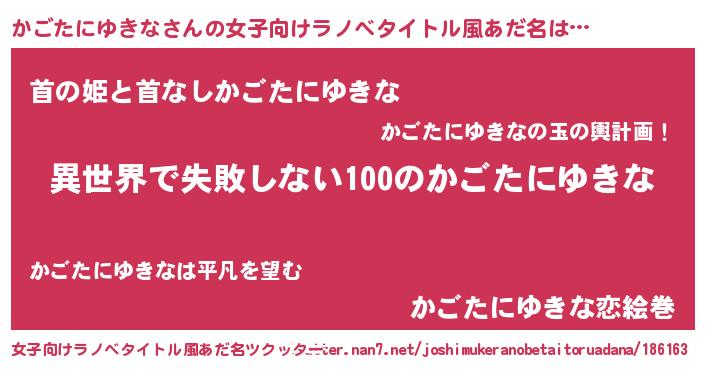 | ヒーロー風カッコイイあだ名 | 『ネオカゴタニユキナ』『黄金騎士カゴ』 |