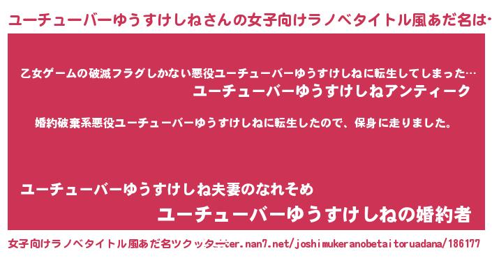 | 男性向けラノベタイトル風あだ名 | 『ユーチューバーユウスケシネスレイヤー』 |