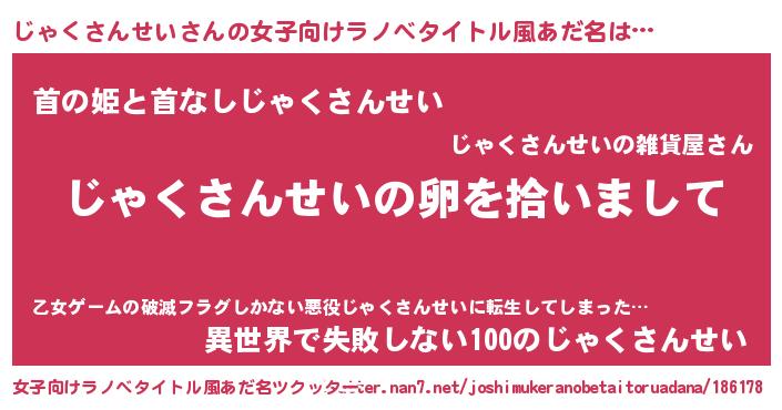 | 胡散臭い通販商品みたいなあだ名 | 『伝統あるサプリメント…その名も「じゃくさんせい」』 |