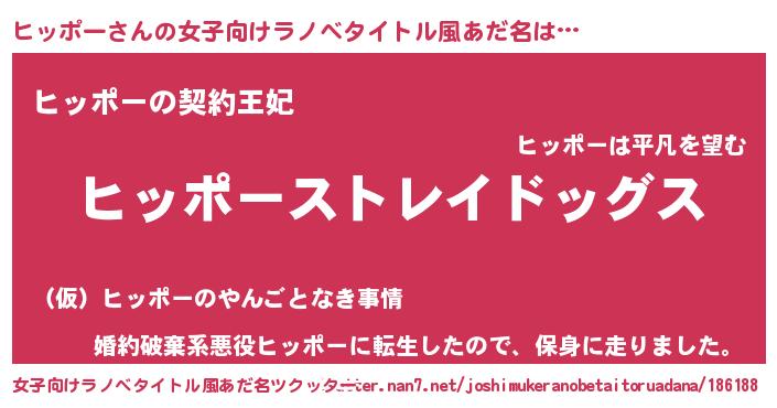 | 意味不明あだ名 | 『自称ヒッポー』『永久保存ヒッポー』 |