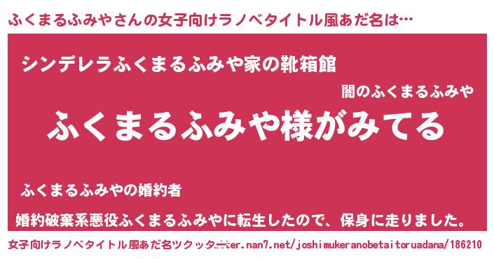 | 男性向けラノベタイトル風あだ名 | 『ふくまるふみやの嫁は女の子じゃないと思った?』 |