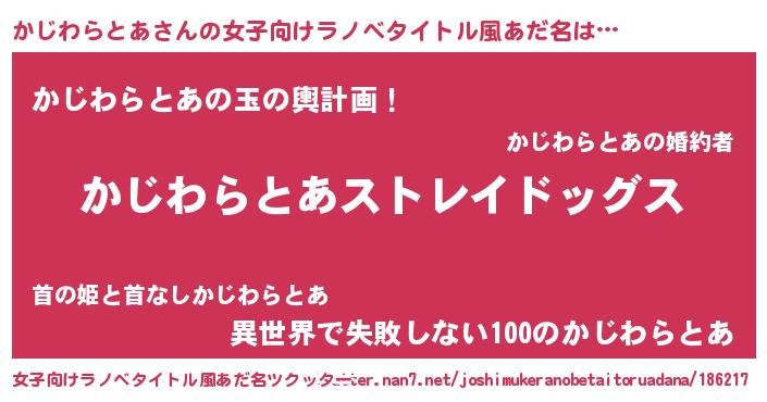 | 男性向けラノベタイトル風あだ名 | 『Re:かじわらとあから始める異世界生活』 |