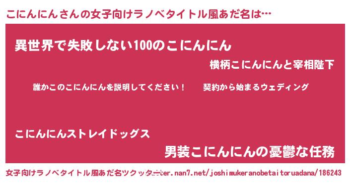 | 胡散臭い通販商品みたいなあだ名 | 『億万長者になれる霊験あらたかなお札…その名も「こにんにん」』 |