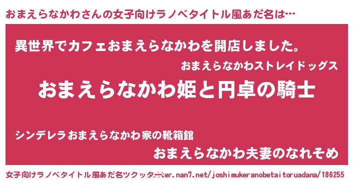 | 男性向けラノベタイトル風あだ名 | 『おまえらなかわの憂鬱』 |