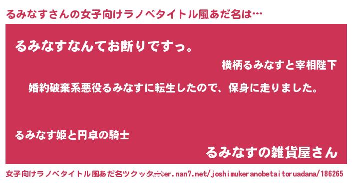 | 男性向けラノベタイトル風あだ名 | 『ルミナススレイヤー』『るみなすの憂鬱』 |