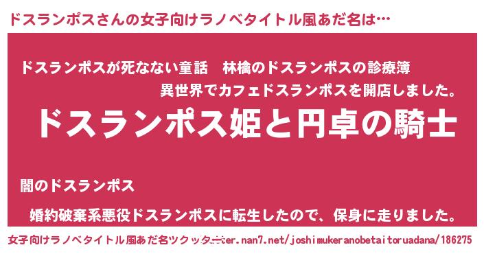 | 胡散臭い通販商品みたいなあだ名 | 『モテモテ間違いなし水晶球…その名も「ドスランポス」』 |