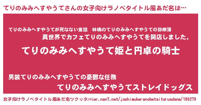 | 胡散臭い通販商品みたいなあだ名 | 『モテモテ間違いなし霊験あらたかなお札…その名も「てりのみみへすやうて」』 |