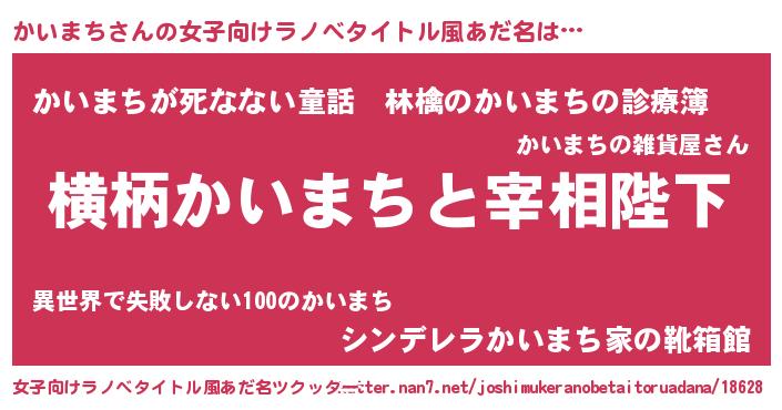 | 男性向けラノベタイトル風あだ名 | 『かいまちに滅ぼされるだけの簡単なお仕事です』 |