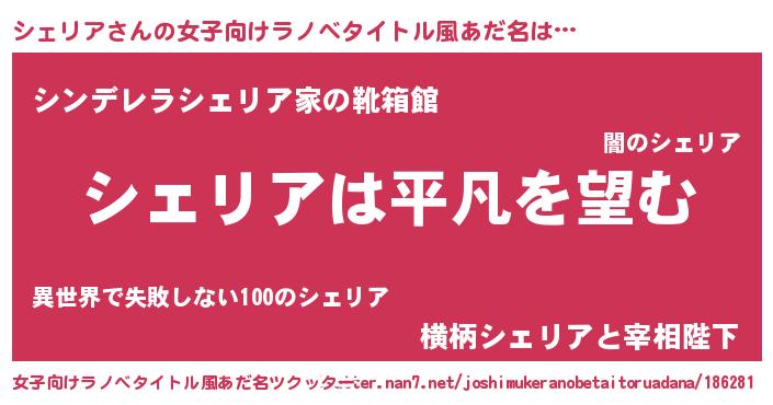 | 男性向けラノベタイトル風あだ名 | 『ダンジョンにシェリアを求めるのは間違っているだろうか』 |