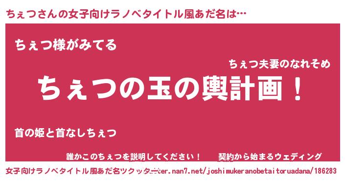 | 意味不明あだ名 | 『なめこ科ちぇつ属』『ペロリンちぇつ』 |