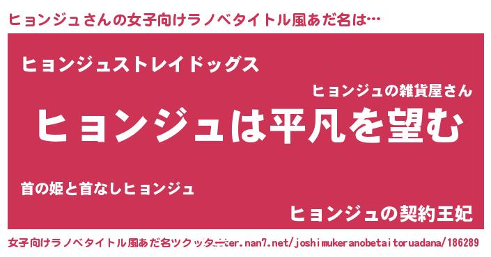 | 男性向けラノベタイトル風あだ名 | 『ダンジョンにヒョンジュを求めるのは間違っているだろうか』 |