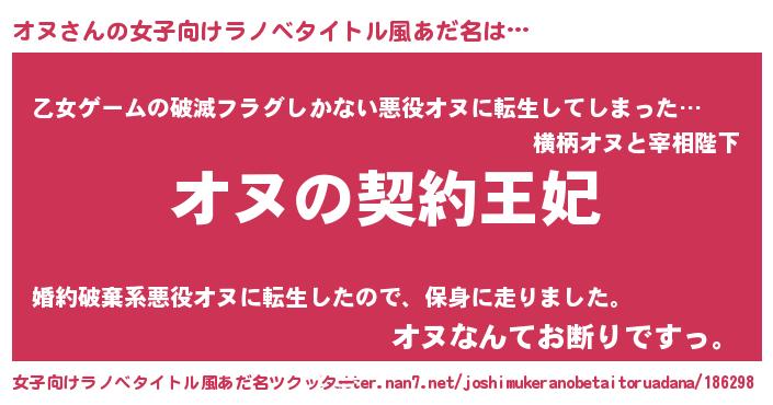 | 男性向けラノベタイトル風あだ名 | 『オヌという概念が存在しない退屈な世界 』 |