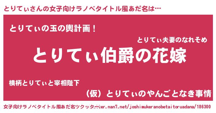 | 意味不明あだ名 | 『とりてぃフォーエバー』 |
