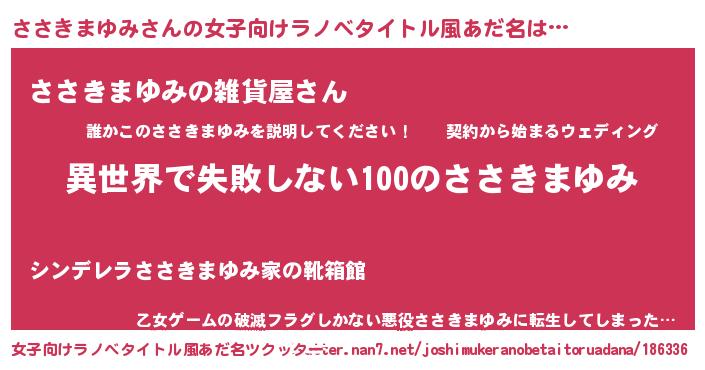 | 胡散臭い通販商品みたいなあだ名 | 『絶対に幸福をもたらす健康食品…その名も「ささきまゆみ」』 |