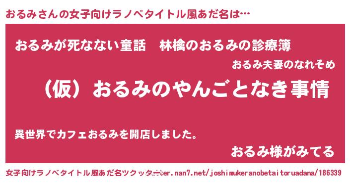| 男性向けラノベタイトル風あだ名 | 『おるみの憂鬱』『魔弾の王とおるみ』 |