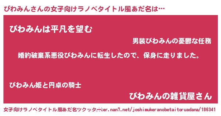 | 男性向けラノベタイトル風あだ名 | 『ビワミンスレイヤー』 |