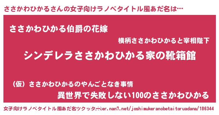 | ヘコむあだ名 | 『豆乳』『ささかわひかる(遠い目)』 |