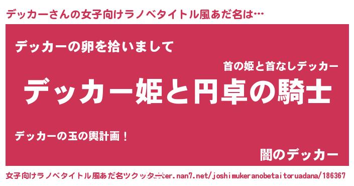 | 男性向けラノベタイトル風あだ名 | 『デッカーアートオンライン』 |